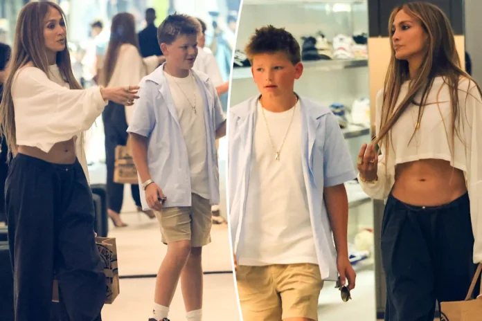 The singer, actress, and business mogul stunned in a chic white crop top that highlighted her toned abs, paired with low-rise black trousers. Lopez’s effortless yet stylish look turned heads as she walked alongside Emme and Samuel, showing once again why she remains a fashion icon after decades in the spotlight.