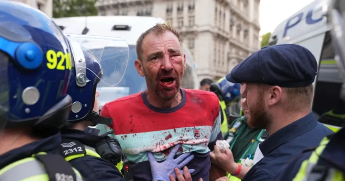 London witnessed one of its largest far-right rallies in modern history on Saturday, as more than 110,000 people took to the streets to protest against immigration. The event, called the “Unite the Kingdom” march, turned violent as clashes broke out between protesters and police. Authorities confirmed that 26 officers were injured, four of them seriously, in what they described as “unacceptable violence.”